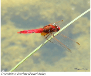 ODONATES : observations, entre autres, de belles libellules bleues (Anax empereur) et rouges (Crocothémis écarlate).